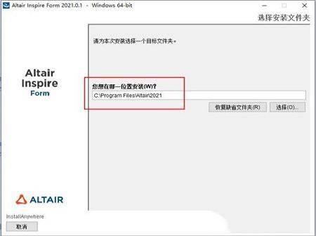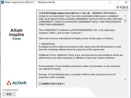 2、双击文件“AltairInspireForm2021_win64.exe”选择简体中文依提示安装;