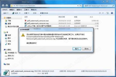 6、再双击“pdf_watermark_remover.reg”弹出注册表,点击“是”按钮