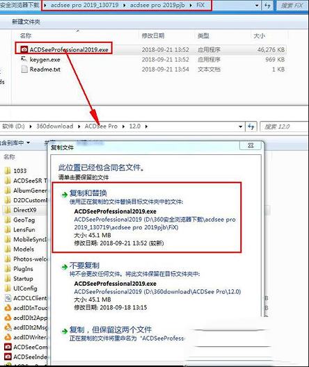 1、安装完成之后,打开软件包,将fix目录下的“ACDSeeProfessional2019.exe”破解补丁复制到软件安装目录下,默认目录为:【C:\Program Files\ACD Systems\ACDSee Pro\12.0】。