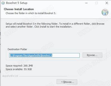 3.选择安装位置,默认路径为“C:\Program Files\Appsforlife\Boxshot 5”,建议最好不要安装到系统盘(C盘)