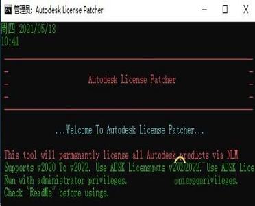 2.如果你的软件已经运行请关闭它,我们回到刚才下载的数据包中运行破解补丁“Autodesk License Patcher Ultimate.exe”,等待它运行完成即可