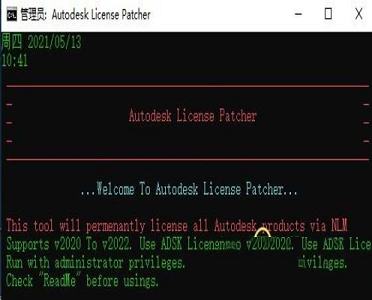2.如果你的软件已经运行请关闭它,我们回到刚才下载的数据包中运行破解补丁“Autodesk License Patcher Ultimate.exe”,等待它运行完成即可
