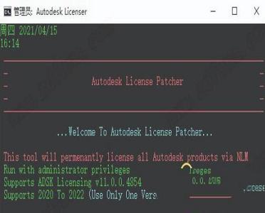 2、如果你的软件已经运行请关闭它,我们回到刚才下载的数据包中运行破解补丁“Autodesk License Patcher.exe”,等待它运行完成即可