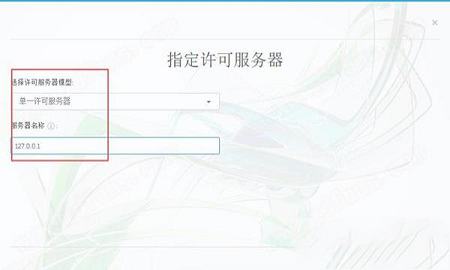 4、选择“单个许可证服务器”输入“127.0.0.1”。