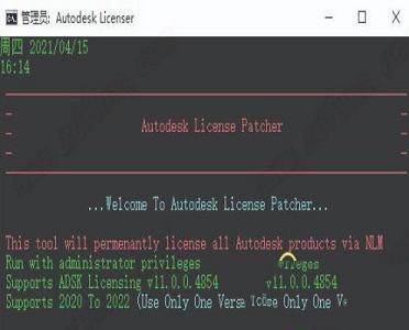 2、如果你的软件已经运行请关闭它,我们回到刚才下载的数据包中运行破解补丁“Autodesk License Patcher.exe”,等待它运行完成即可