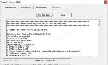 5.在开始菜单找到Foundry License Utility,右键以管理身份运行,选择Diagnostics选项,然后点击Run Diagnostics按钮