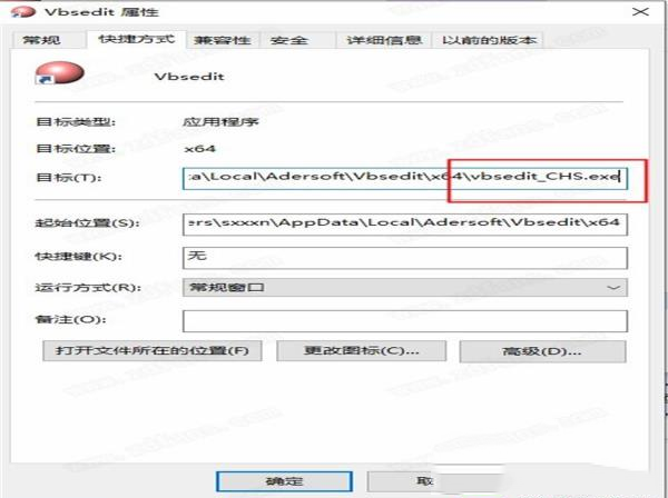7、如果你需要从桌面快捷打开,还可以将快捷方式的目标改成vbsedit_CHS.exe。