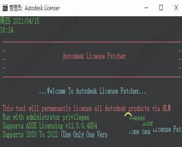 3、如果你的软件已经运行请关闭它,我们回到刚才下载的数据包中运行破解补丁“Autodesk License Patcher.exe”,等待它运行完成即可