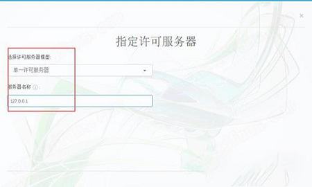 5、选择“单个许可证服务器”输入“127.0.0.1”。