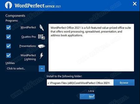 2.选择安装位置,默认路径为“c:\Program Files (x86)\Corel\WordPerfect Office 2021\”,建议最好不要安装到系统盘(C盘)