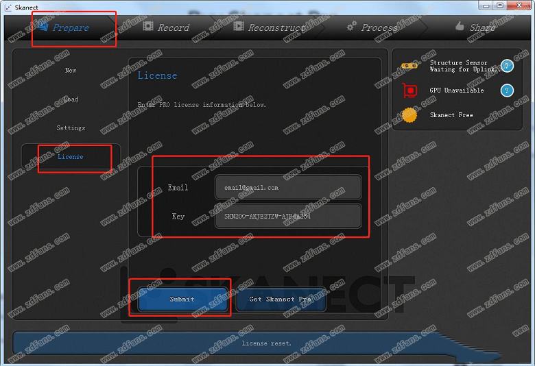 7:在“prepare”-“license”里面填入注册信息br />email@gmail.com