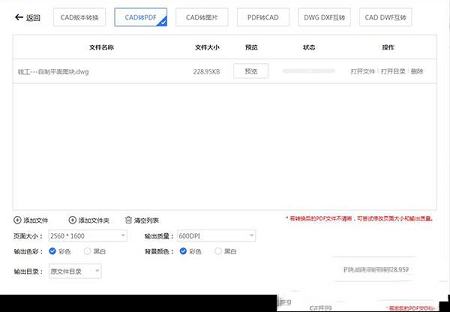 3、图纸转换成PDF文件,可以将CAD图纸格式的文件转换成PDF格式的文件,且支持多张图纸的转换