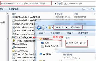 4、接着打开Crack UZ1夹选择所需版本,将“TurboCollage.exe”文件复制到软件安装目录中替换,默认安装路径为【C:\Program Files (x86)\SilkenMermaid Technologies\TurboCollage】