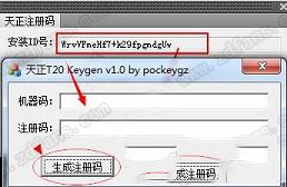 3、然后打开软件包,运行注册机文件T20Keygen_v2.00.exe,选中安装IDh号复制到注册机的机器码中,并点击“生成注册码”按钮。
