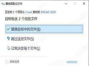 4.将刚才下载解压数据包中的“crack”文件夹里面的破解补丁复制到软件根目录下;默认路径:C:\Program Files\ZWSOFT\ZWCAD 2021