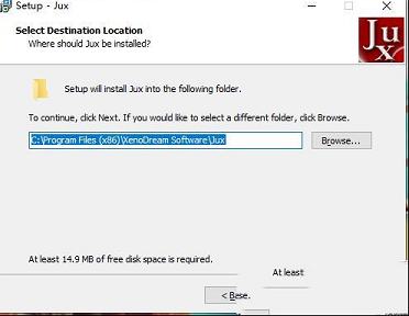 4、点击“Browse”可更改安装软件位置安装向导默认设置的软件默认安装路径为C:\Program Files (x86)\XenoDream Software\Jux