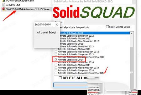 9、运行注册机,选择Activate SolidWorks 2014,点击Activate激活选项,弹出提示即可