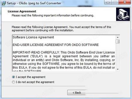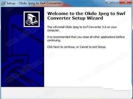 1、下载okdo-jpeg-to-swf-converter.exe软件直接启动安装,提示英文的安装界面;