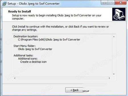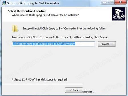 3、提示官方设置的安装地址C:\Program Files (x86)\Okdo Jpeg to Swf Converter;
