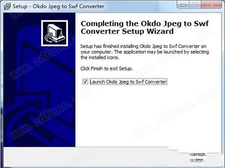 8、这里默认选择打开Okdo Jpeg to Swf Converter,点击finish。