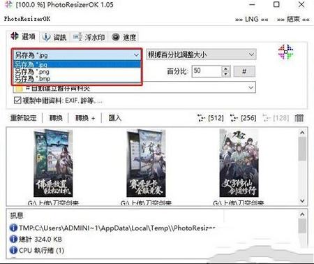 3、支持多种不同的输出格式,包括JPG、PNG、BMP;