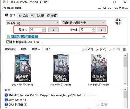 8、支持不同的压缩百分比,以指定百分比进行压缩。