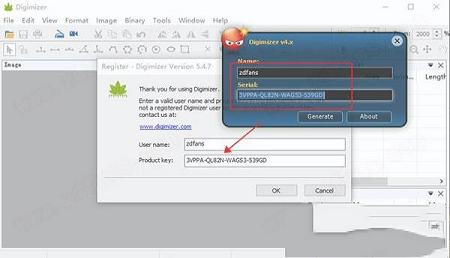 6.再回到刚才下载的数据包中运行注册机“keygen.exe”,随意输入用户名点击generate生成注册码,再将其复制到软件的注册窗口中点击“ok”