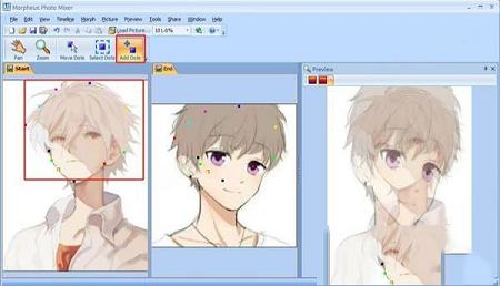 4、再点击add dots,设定好两张图片彼此之间的变形对应点