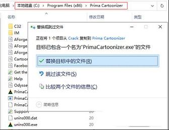 5、此时,打开Crack夹将“PrimaCartoonizer.exe”破解文件复制到软件安装目录中进行替换;默认安装路径为【C:\Program Files (x86)\Prima Cartoonizer】