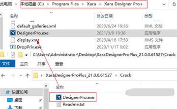 5、此时,打开Crack夹将“DesignerPro.exe”破解文件复制到软件安装目录中进行替换;默认安装目录为【C:\Program Files\Xara\Xara Designer Pro+】