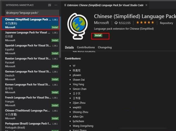 3、完成之后会出现许多种语言,选择中文简体,选择“Install”,等待几秒软件转换语言,完成之后重启即可转化为中文