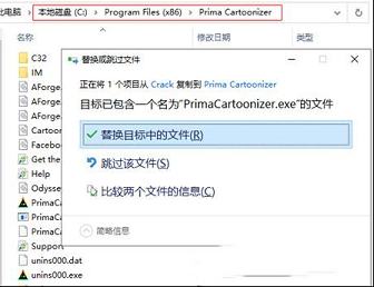 5、此时,打开Crack夹将“PrimaCartoonizer.exe”破解文件复制到软件安装目录中进行替换