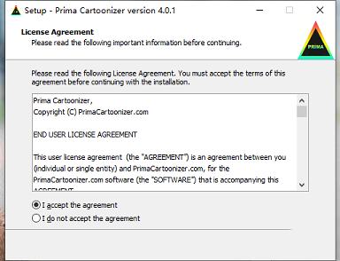 2、双击“PrimaCartoonizer_Setup-64bit.exe”文件运行,选择语言,勾选同意协议进行安装