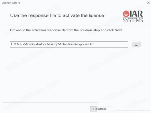 7.再次回到破解补丁界面,点击“browse..”载入选择刚才保存的文件,然后点击Activate license按钮,并保存ActivationResponse.txt文件
