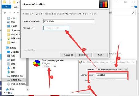 5、到了需要序列号的步骤后打开Crack文件夹内的“Teechart-Keygen.exe”选择“TeeChart Pro v2010 SOURCE”点击“generate”将获取的序列号粘贴复制到软件安装程序对应框框并点击“Next”。