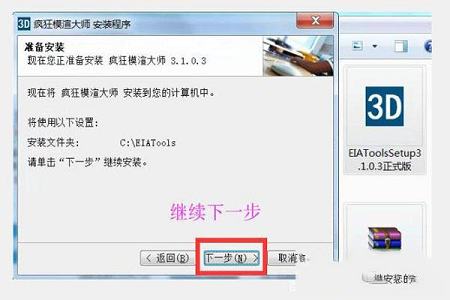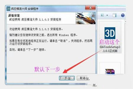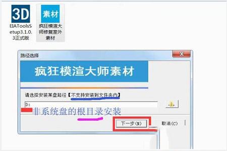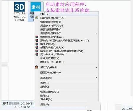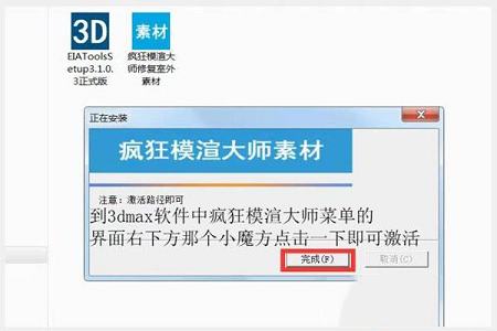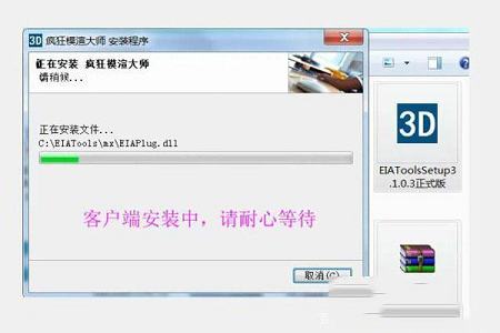 1、解压压缩包之后得到EIATools“图标上是3D”,还有素材应用程序,先启动疯狂模渲大师客户端“3D图标”安装。