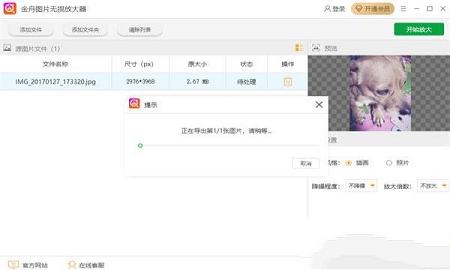 1、金舟图片无损放大器可以设置高级降噪程度,可以设置低级降噪程度。2、处理状态在在软件显示,查看处理完毕的图像。