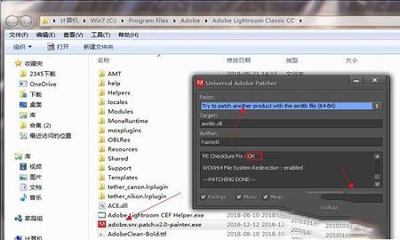 5、将注册机adobe.snr.patch.v2.0-painter.exe复制到上一步打开的安装目录下并运行,如果当您在补丁程序的下拉列表中选择产品时激活不起作用,请转到列表的底部,选择另一个带有amtlib的用于x64或x86的Adobe产品,请正确选择并执行补丁即可破解。
