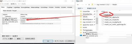 5、再打开右上角mmeffect区,在main栏给模型加载main.fx: