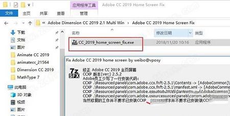 4、来到如下图所示文件夹,双击“CC_2019_home_screen_fix.exe”程序完成对软件的破解。