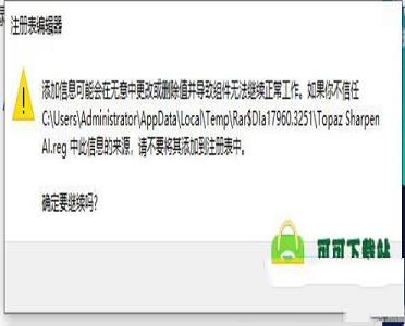 7、解压Activation.zip并打开Topaz Sharpen AI.reg添加合并注册表,点击是