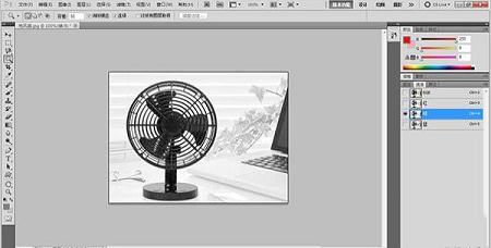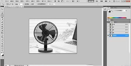 一、photoshopcs5怎么抠图?(1)启动软件,任意导入一张图片进行示范,以下图电风扇为例;