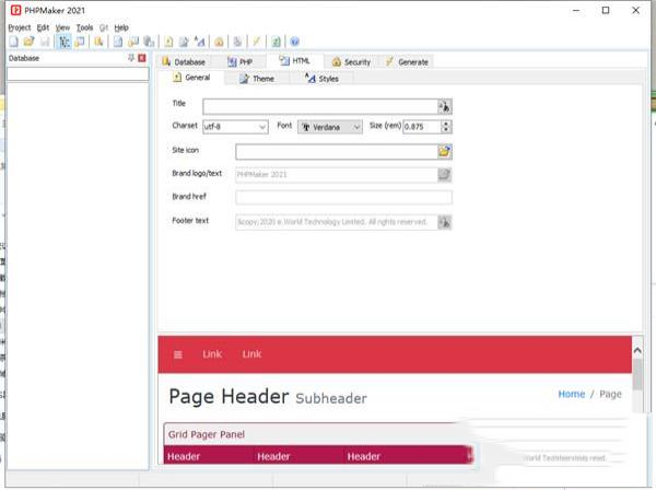 4、关于HTML代码,您可以编辑标题,字符集,字体,网站图标,标题徽标和页脚文本,以及自定义主题(例如网站标题,左列,页脚)和样式。