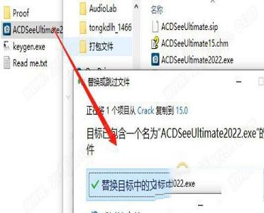 3、将crack文件夹内的补丁文件ACDSeeUltimate2022.exe复制并替换到软件的安装目录下;