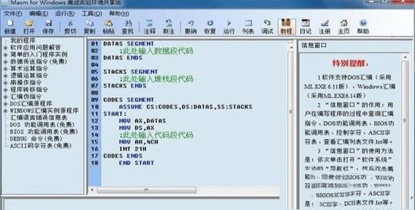 15、200多种中英文错误信息同步显示功能扫除了英文差的用户学习汇编语言的恐惧心理。