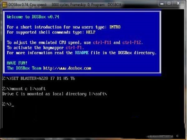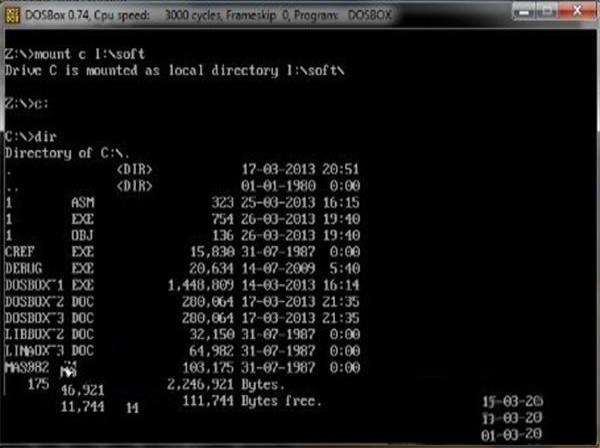 6、将MASM文件夹里的全部文件拷贝到一个目录下,比如L:\soft下,然后将这个目录挂着为DOSBox的一个盘符下,挂载命令为Mount c L:\soft。