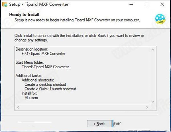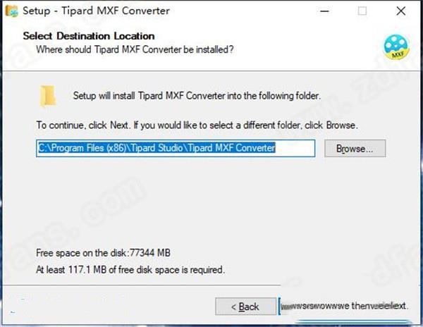 4、点击“Browse”选择软件安装位置,安装向导默认设置的软件默认安装路径为C:\Program Files (x86)\Tipard Studio\Tipard MXF Converter