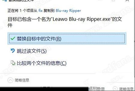 4、将fix文件下的子文件复制到软件中,点击替换目标中的文件